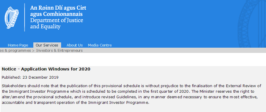 最新通知 | 2020愛爾蘭投資移民窗口期官方公布