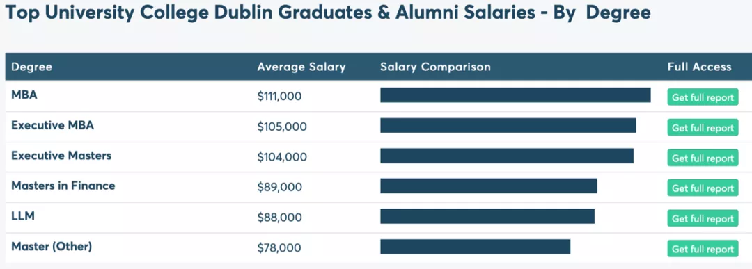 圖為UCD研究生畢業(yè)后最能“賺錢(qián)”的幾個(gè)行業(yè),其中MBA課程(工商管理碩士)的平均工資能夠達(dá)到11.1萬(wàn)美元(約71萬(wàn)人民幣/年)。