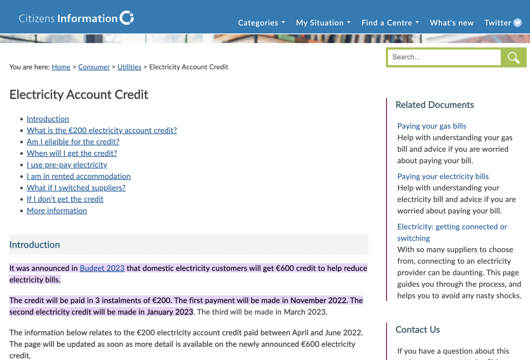 隨著2023年預算案宣布,愛爾蘭全國的電力用戶將獲得價值600歐元的補貼,以幫助減少電費。