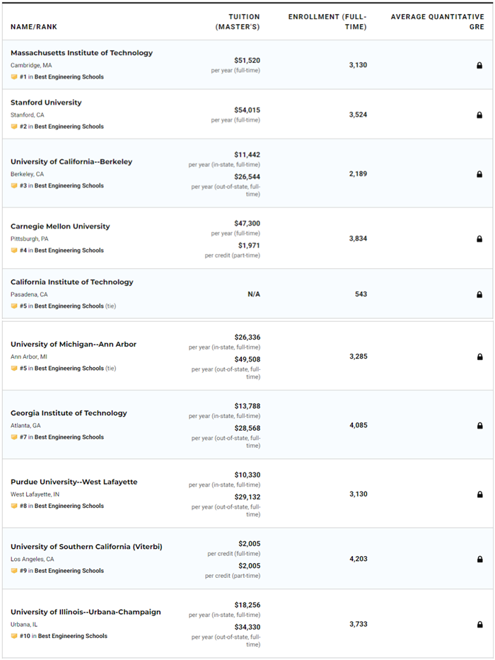 工程學(xué)院排名TOP10