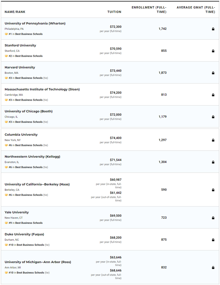 商學(xué)院排名TOP10