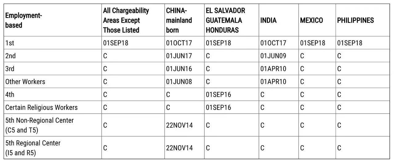 8月15日,美國國務(wù)院簽證辦公室發(fā)布了2019年9月的簽證公告牌。其中,EB-5排期前進(jìn)一周,更新至2014年10月22日,表B也前進(jìn)一周到2014年11月22日。EB-1排期暫時(shí)倒退至14年1月1日,估計(jì)是在等待新財(cái)年簽證配額,然后再次啟動(dòng)。