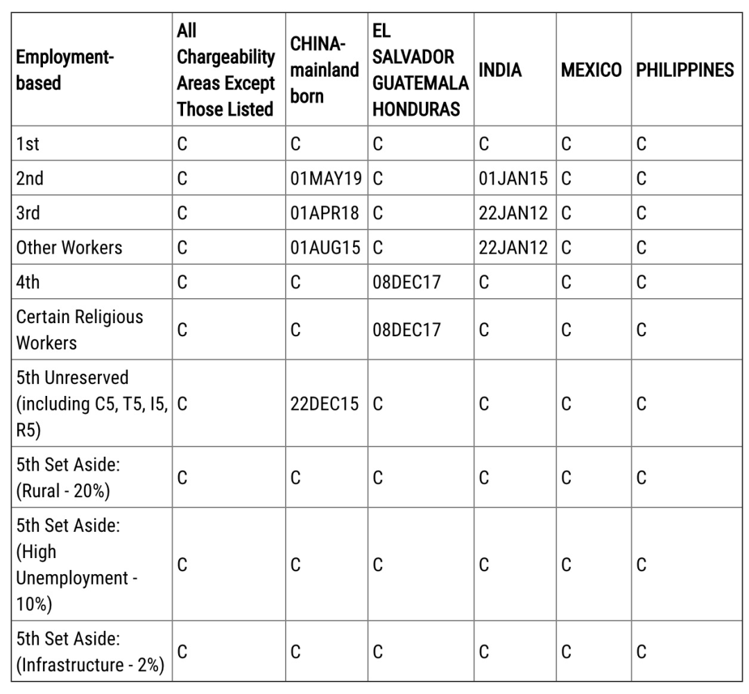 ·表B同樣除EB-2前進(jìn)1個(gè)月至2019年5月1日,其他各類簽證項(xiàng)目排期無(wú)變化。