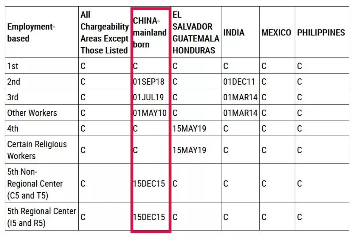 9月職業(yè)移民綠卡排期-遞件日期(表B)