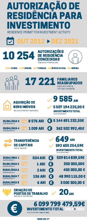 葡萄牙2021年黃金簽證數據出爐!累計吸金指數將破61億歐!