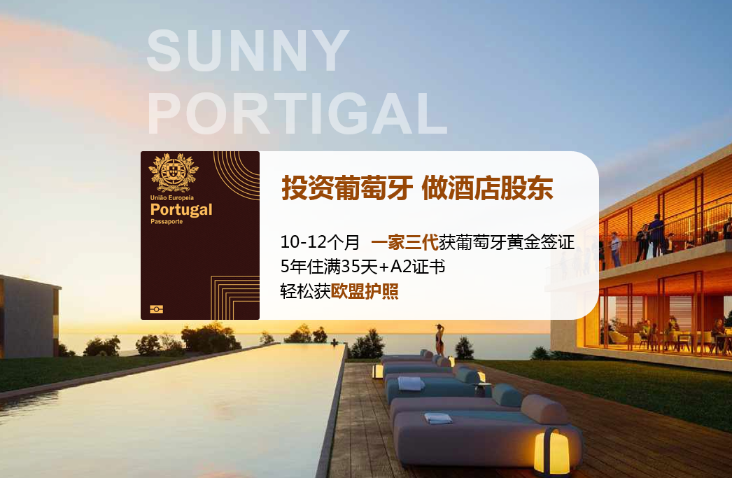永銘國際精選葡萄牙里斯本、波爾圖、阿爾加維等熱門旅游地五星級酒店投資項目,投資28萬歐起,一家三代獲葡萄牙黃金簽證。無持有成本、無酒店管理稅費、無需自己打理、提供每年7天免費住宿。