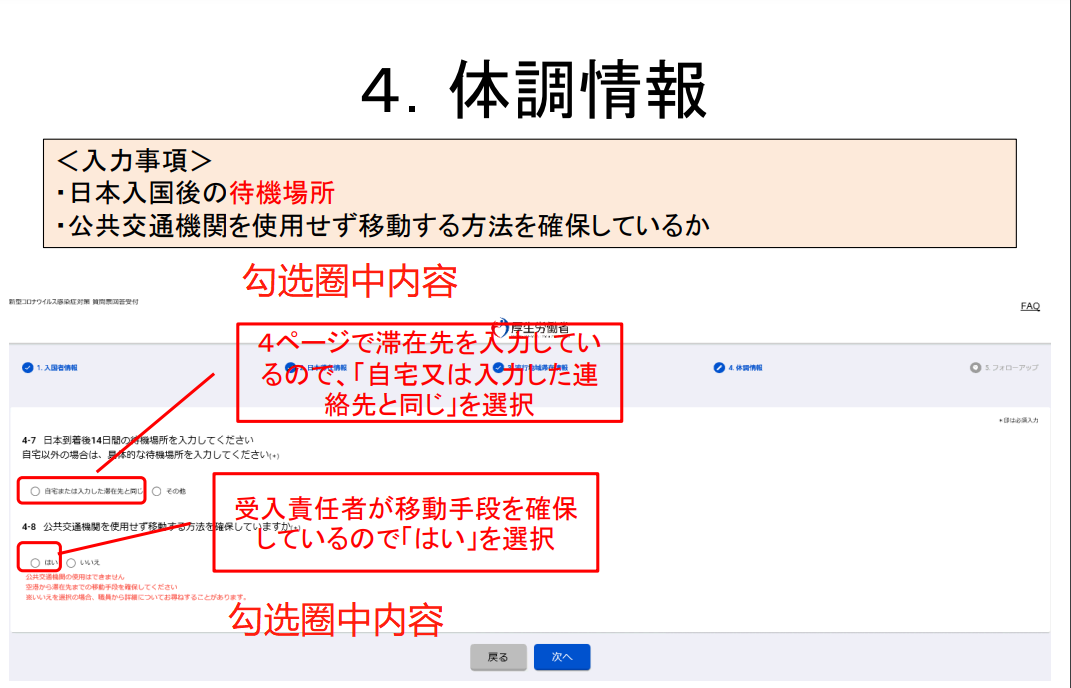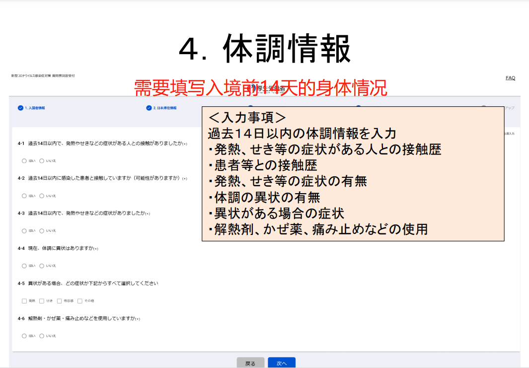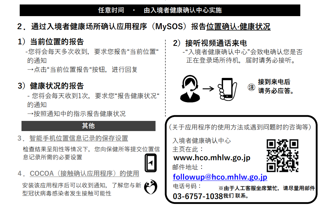 5)通過(guò)MySOS,向厚生勞動(dòng)省“入境者健康確認(rèn)中心”通報(bào)健康狀況及所在地。